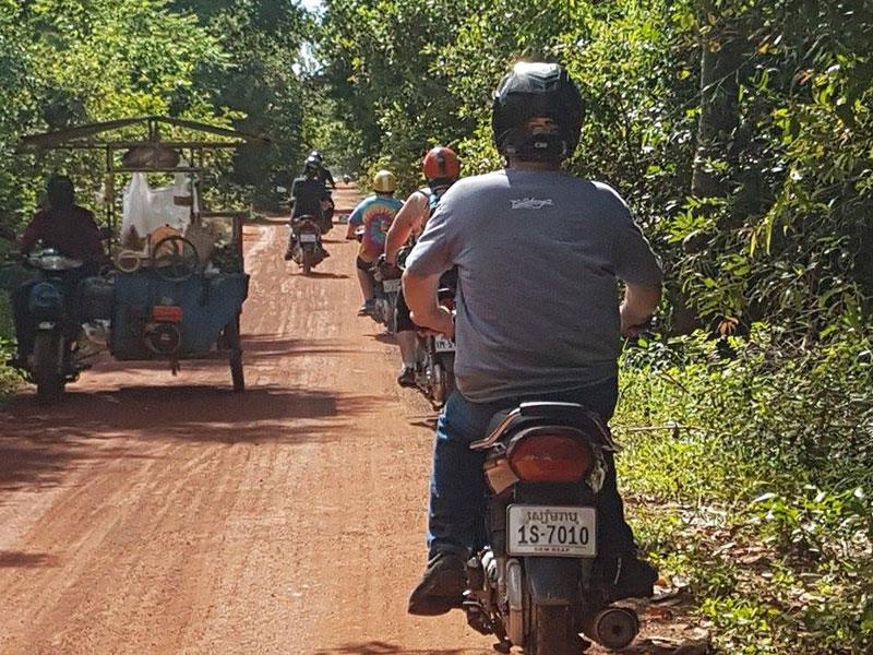 After breakfast, guests have the option to trek deeper into the Kulen Mountains for two hours or to explore more of the national park by more challenging motorbike routes. We stand in awe of the life size elephant and lion statues. From here, we circle around the mountain by single tracks to visit one or two more temples, taking four hours to explore. We descend the mountain and travel back to Siem Reap, making a few secret stops along the way.